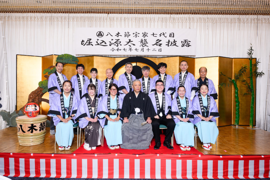 初代より代々受け継がれてきた八木節の伝統と精神を、次の時代へと確かに繋ぐため、このたび七代目として堀込源太が襲名いたしました。